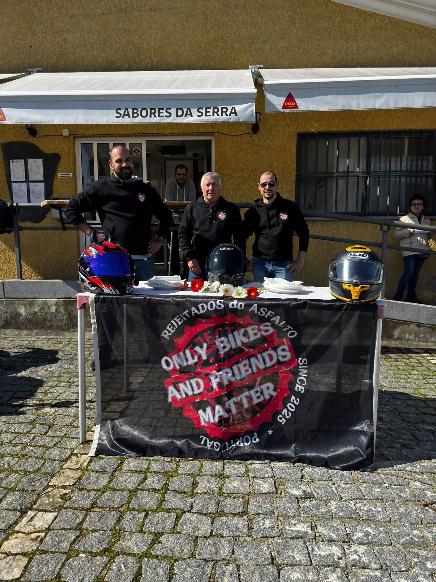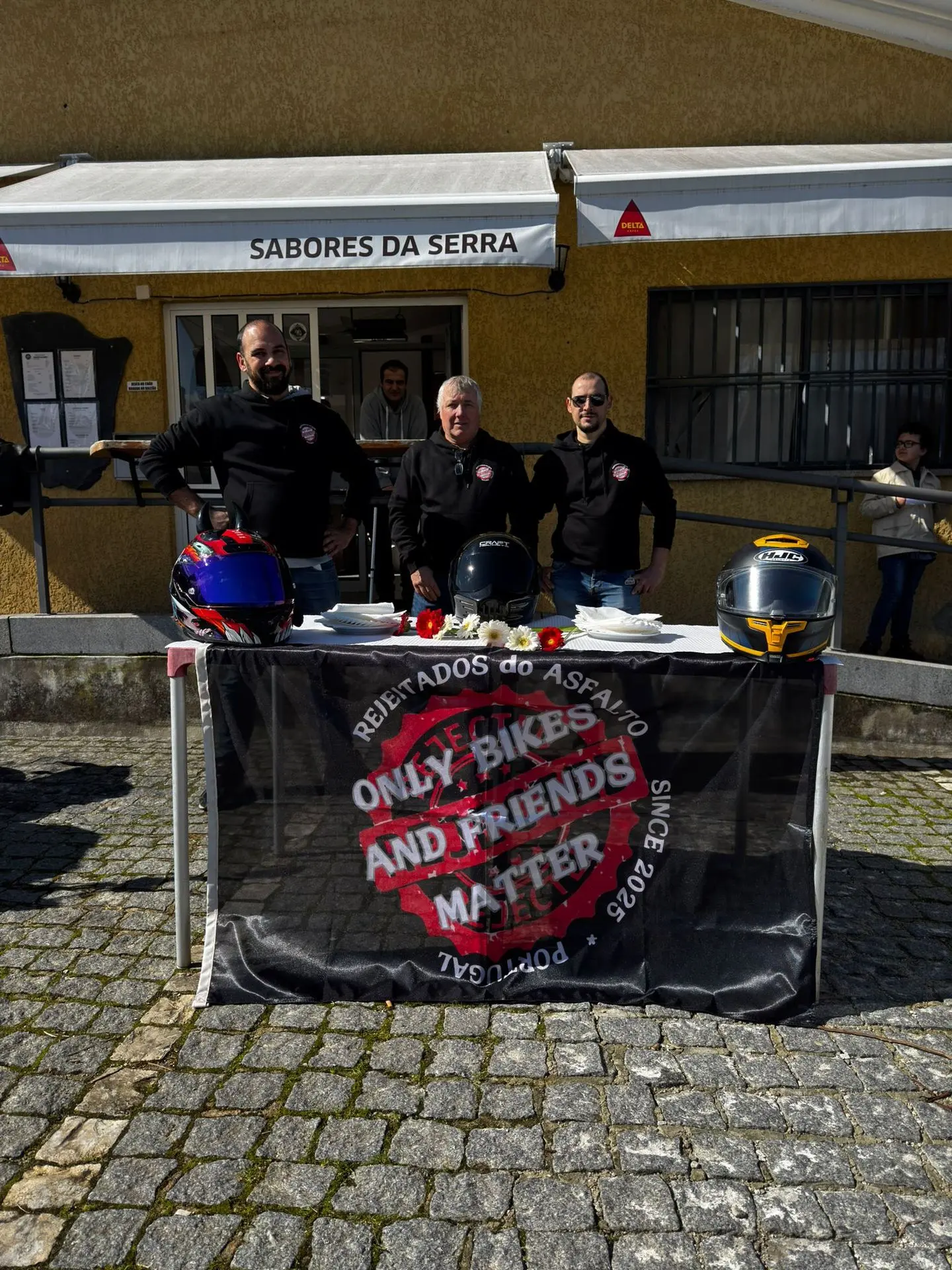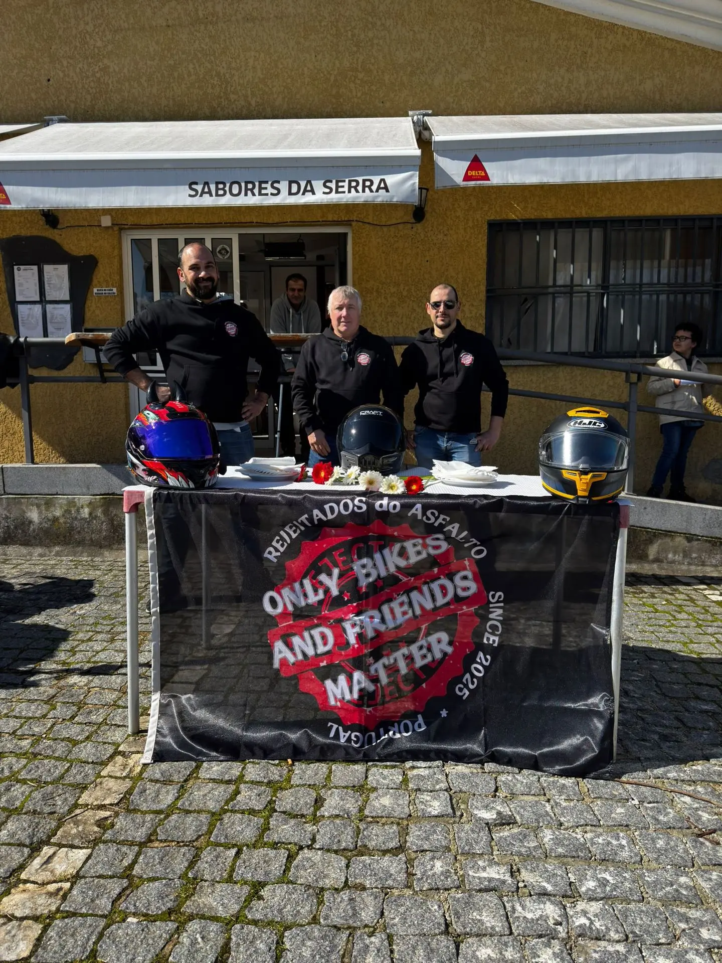 Se você estava hoje pelo Sabores da Serra e viu um grupo de marmanjos vestidos de preto, com capas e cara de quem vai atravessar o deserto, não se assuste. Não era uma gangue de vilões de filme apocalíptico. Eram apenas os Rejeitados do Asfalto em sua missão mais perigosa até hoje: Distribuir flores sem amassar as pétalas.