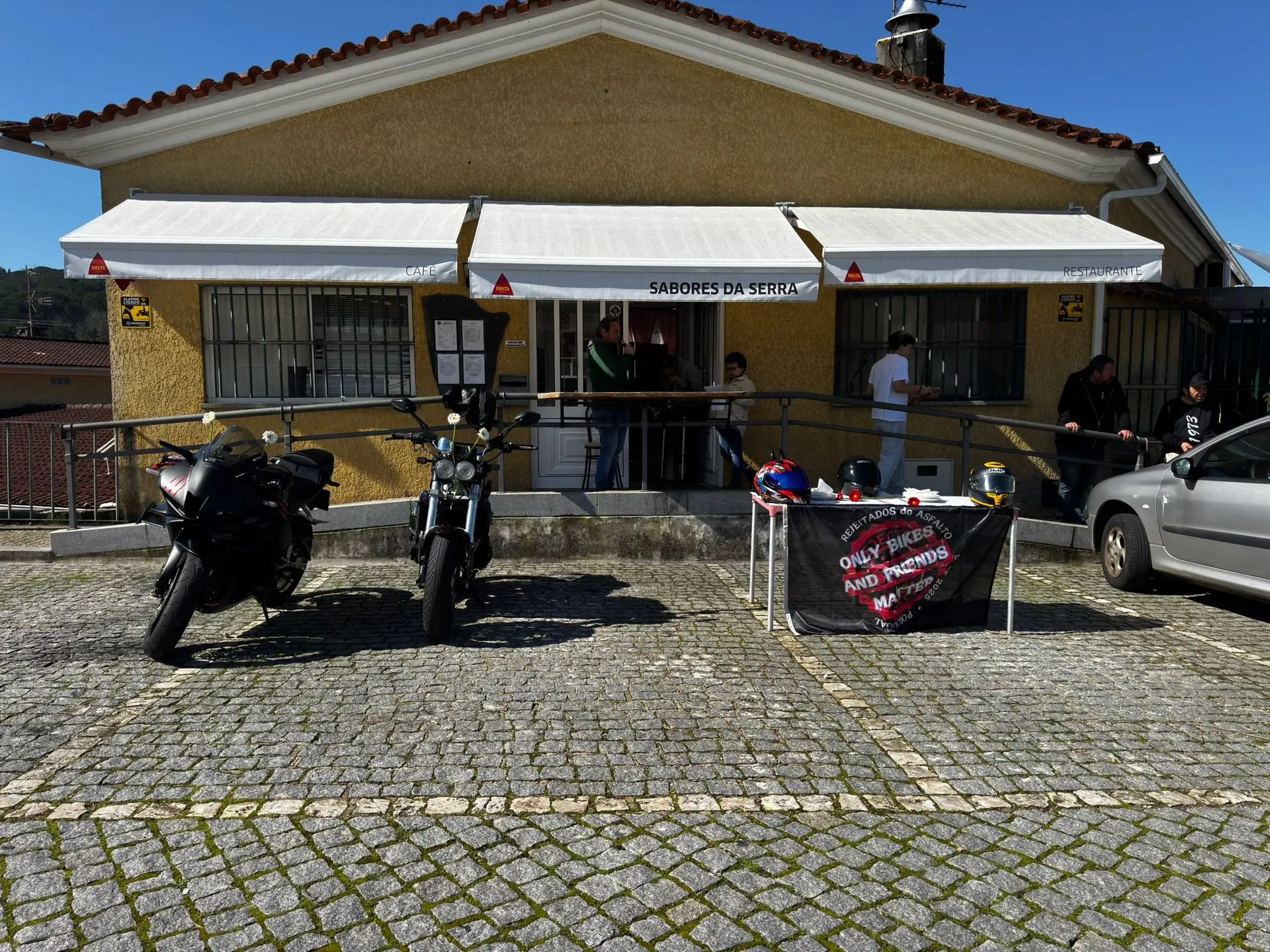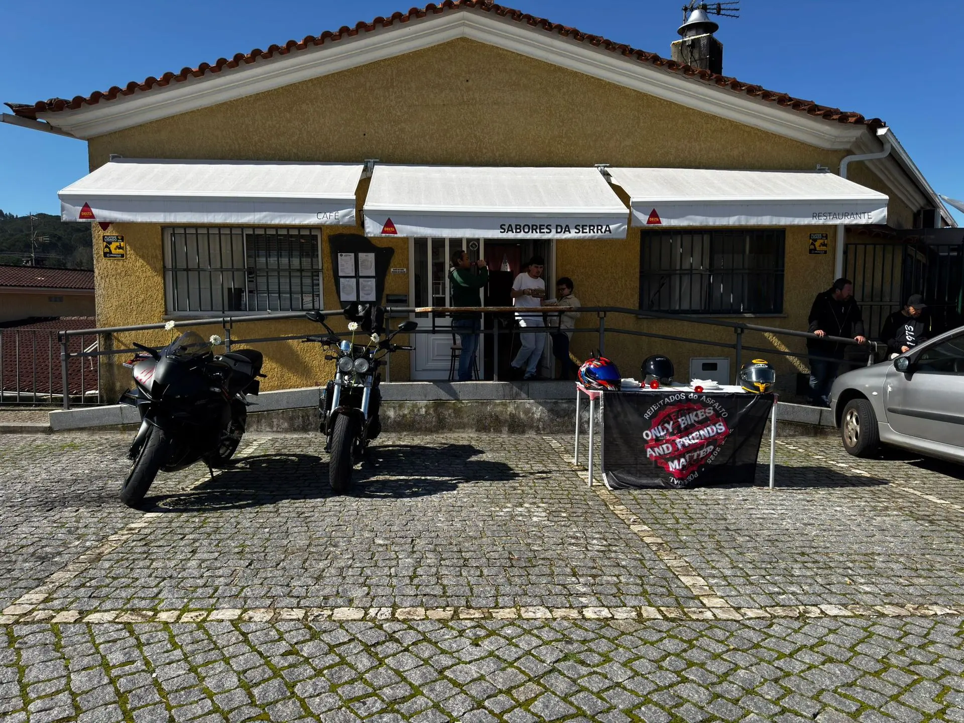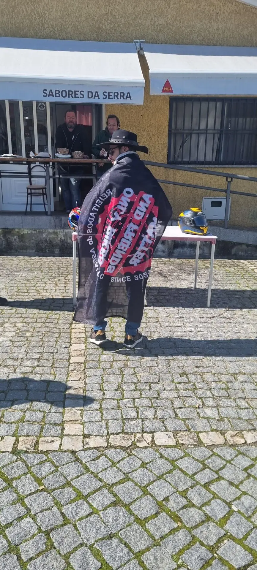Se você estava hoje pelo Sabores da Serra e viu um grupo de marmanjos vestidos de preto, com capas e cara de quem vai atravessar o deserto, não se assuste. Não era uma gangue de vilões de filme apocalíptico. Eram apenas os Rejeitados do Asfalto em sua missão mais perigosa até hoje: Distribuir flores sem amassar as pétalas.
